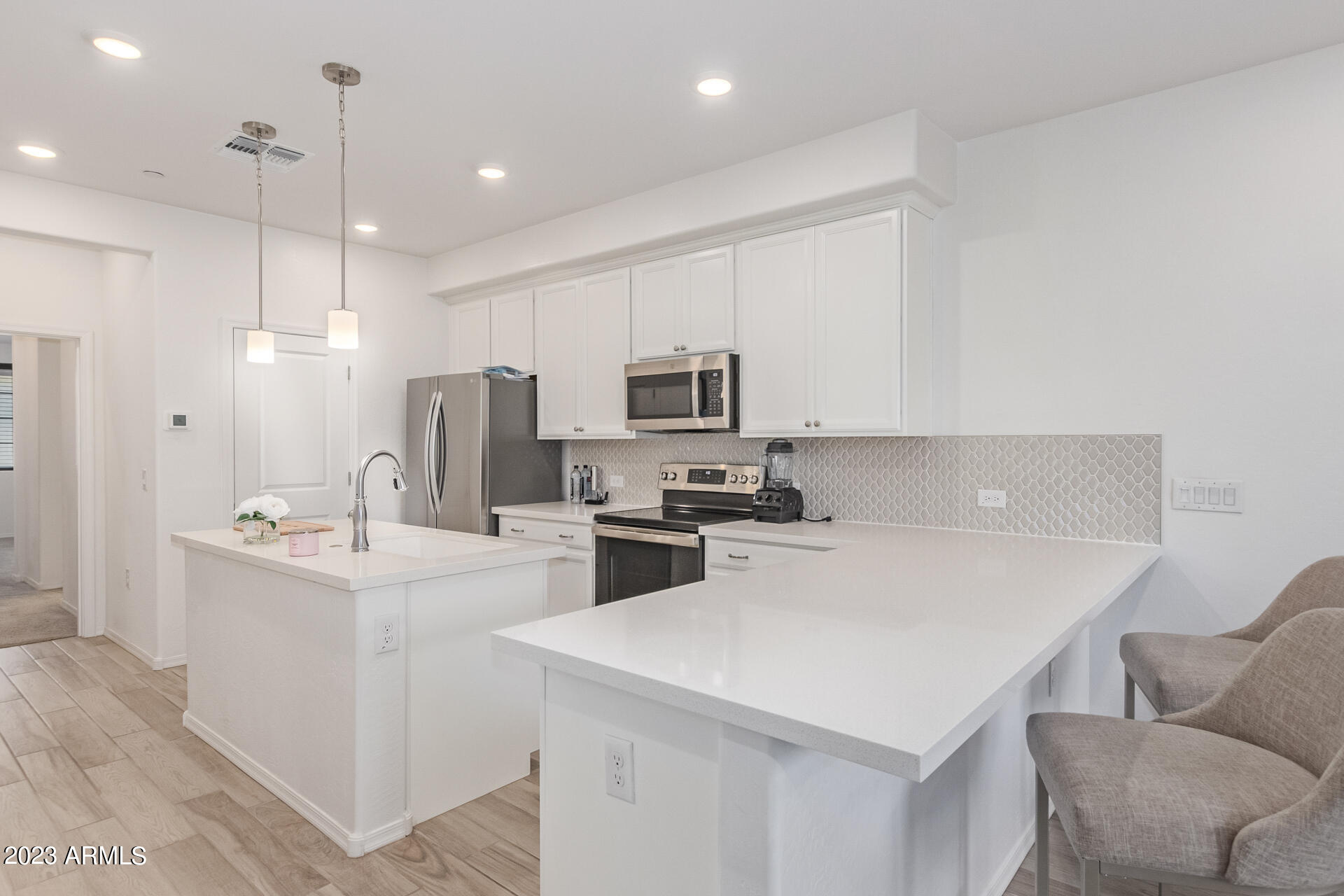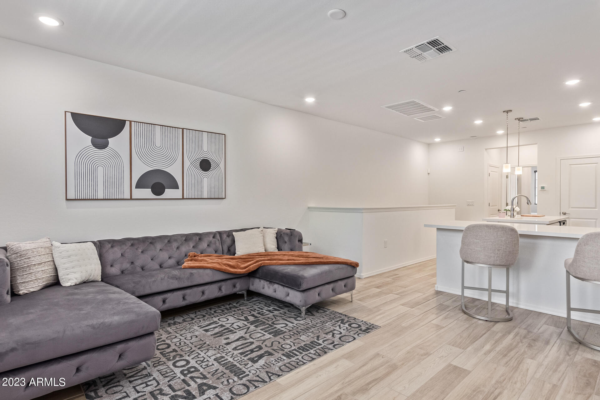 *Beautiful Lock & Leave Townhome in the middle of Shopping + Dining heaven! * This stunning, like-new home is a 2 bedroom + 2 full bathrooms, w/ a split-floor plan * The 1st level features a private suite w/ 1 bedroom & 1 full bathroom * Upstairs you are greeted w/ a light + bright living area & spectacular kitchen * The upgrades are elegant w/ a center kitchen island & wrap around counter for eat-in dining * The gorgeous kitchen features white quartz, white shaker cabinetry, light gray Moroccan tile backsplash, SS appliances & pendant lighting * Open to the living room w/ wood-like tile + recessed lighting * Primary suite is spacious w/ walk-in closet & gorgeous bathroom w/ double sinks & walk-in shower * Full size washer + dryer convey * 2 car tandem, attached garage * This home is one of the nicest upgraded homes in the subdivision and can be yours today! * Walk to San Tan Village with multiple shopping and dining options! * Close to Freeways * This is the ONE! * Gilbert is one of the best places to live in Arizona * Living in Gilbert offers residents a sparse suburban feel and most residents own their homes * In Gilbert there are a lot of coffee shops and parks * Many families and young professionals live in Gilbert and the public schools in Gilbert are highly rated. *
